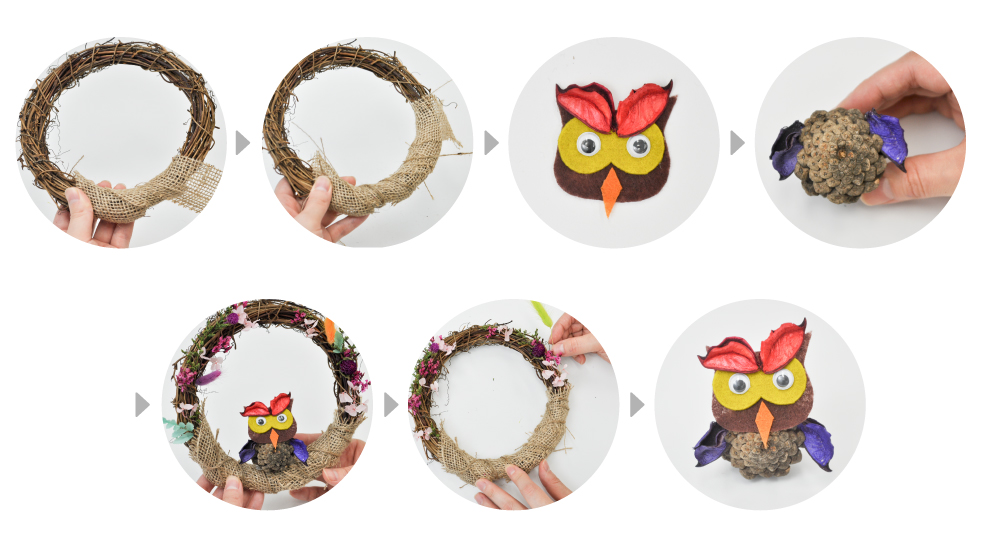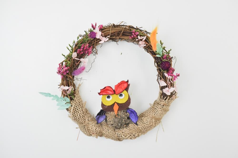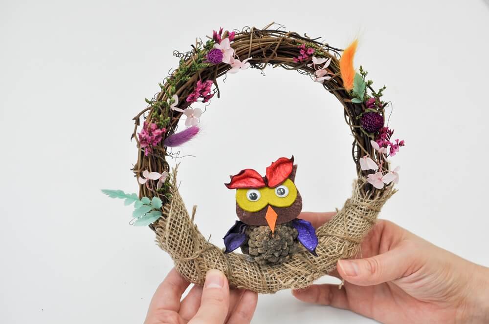 - 리스에 부엉이를 올려 부엉이 둥지를 완성합니다.