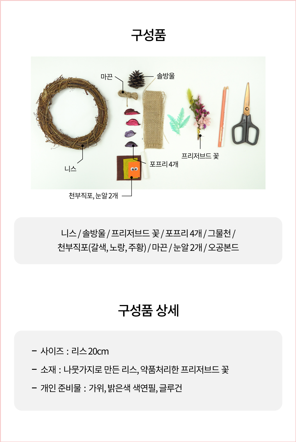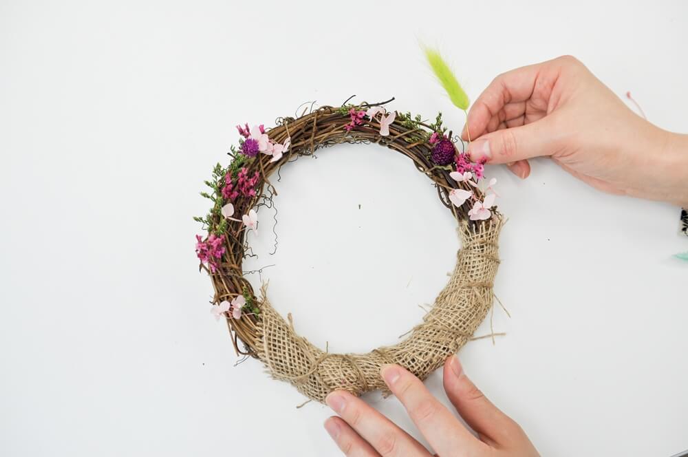 - 프리저브드 꽃을 자유롭게 리스에 꽂아 꾸밉니다.