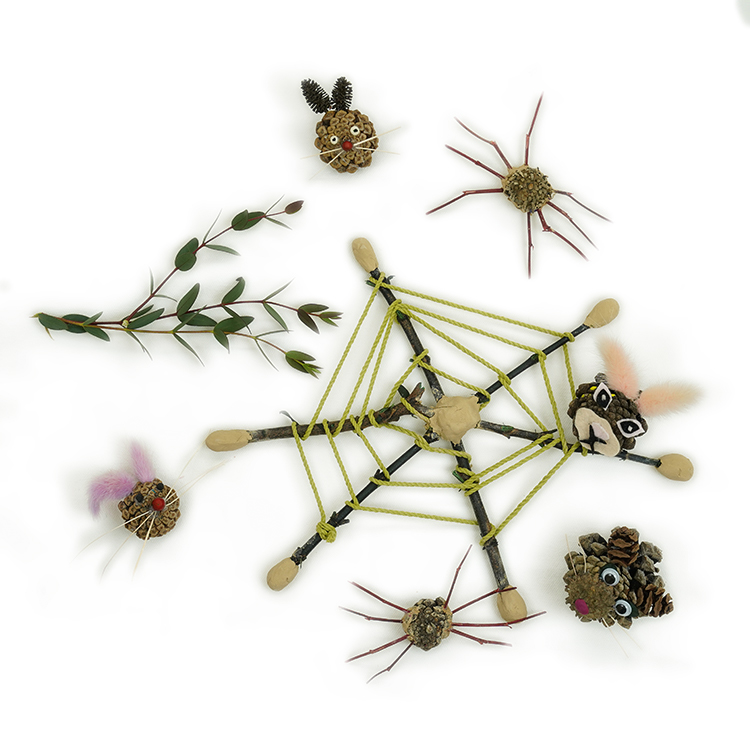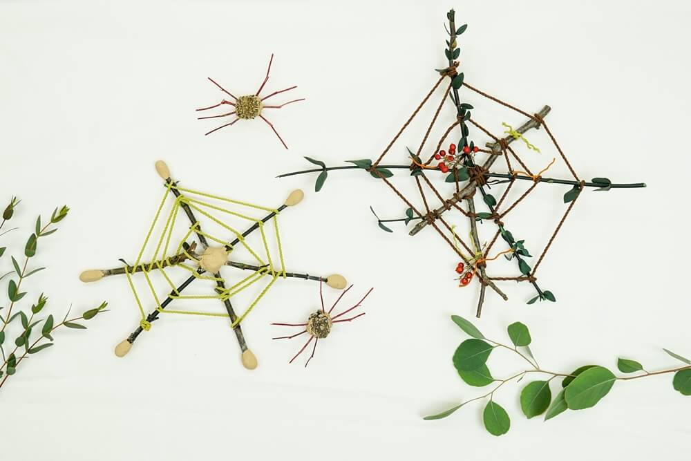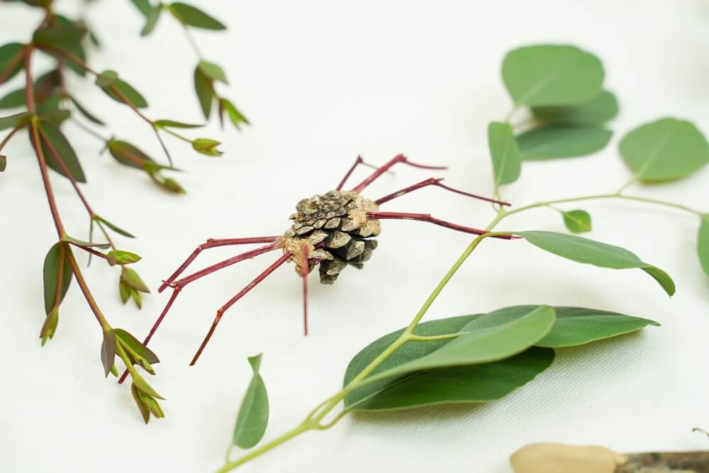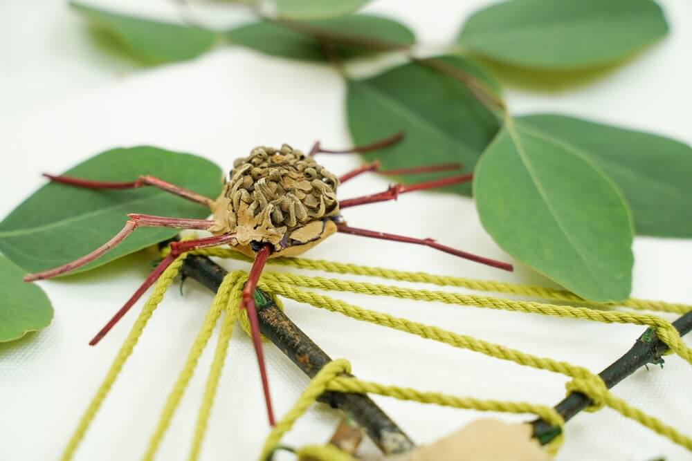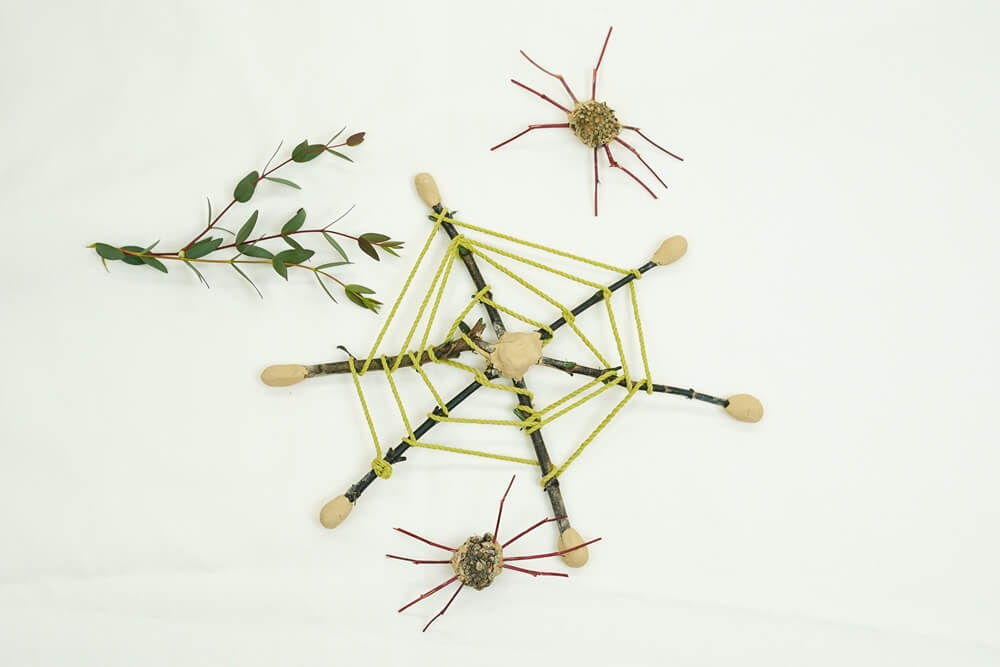 - 나뭇가지 8개를 끼워 거미 다리를 만들어준다.